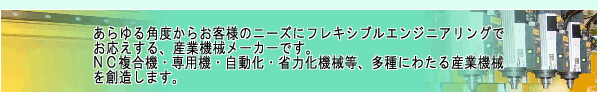 より進化した合理化機械を求め、お客様と当社スタッフが同じ目線で研究し、完成 度の高い製品をお届けいたします。 |