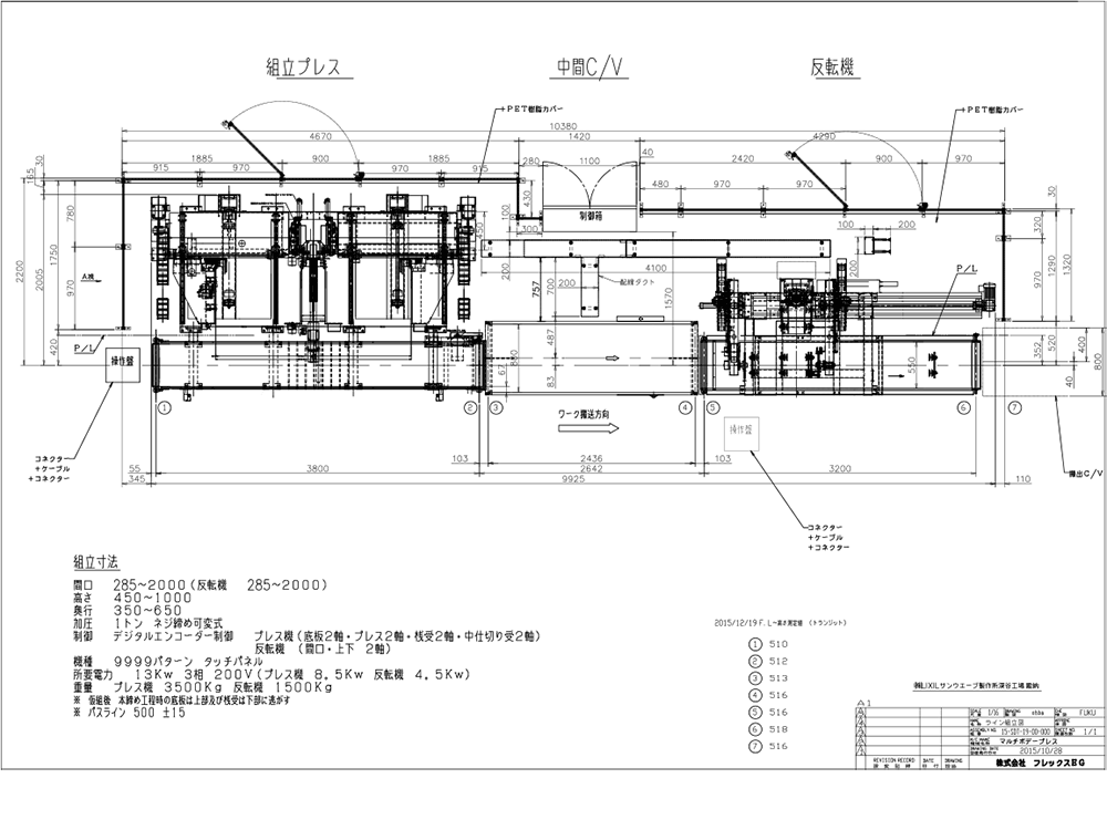 システムキッチン組立 自動幅決 プレス装置 ライン